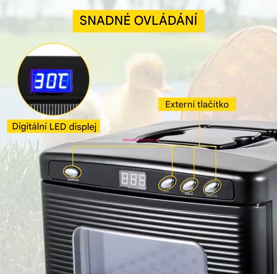 Pohodlné použití: Čiré PVC dvířka jsou navržena tak, abyste mohli sledovat inkubační podmínky, aniž by to ovlivňovalo proces inkubace. Vnitřní ventilátor zajišťuje vynikající cirkulaci vzduchu. A díky vestavěné rukojeti se inkubátor vajec snadno přemisťuje.