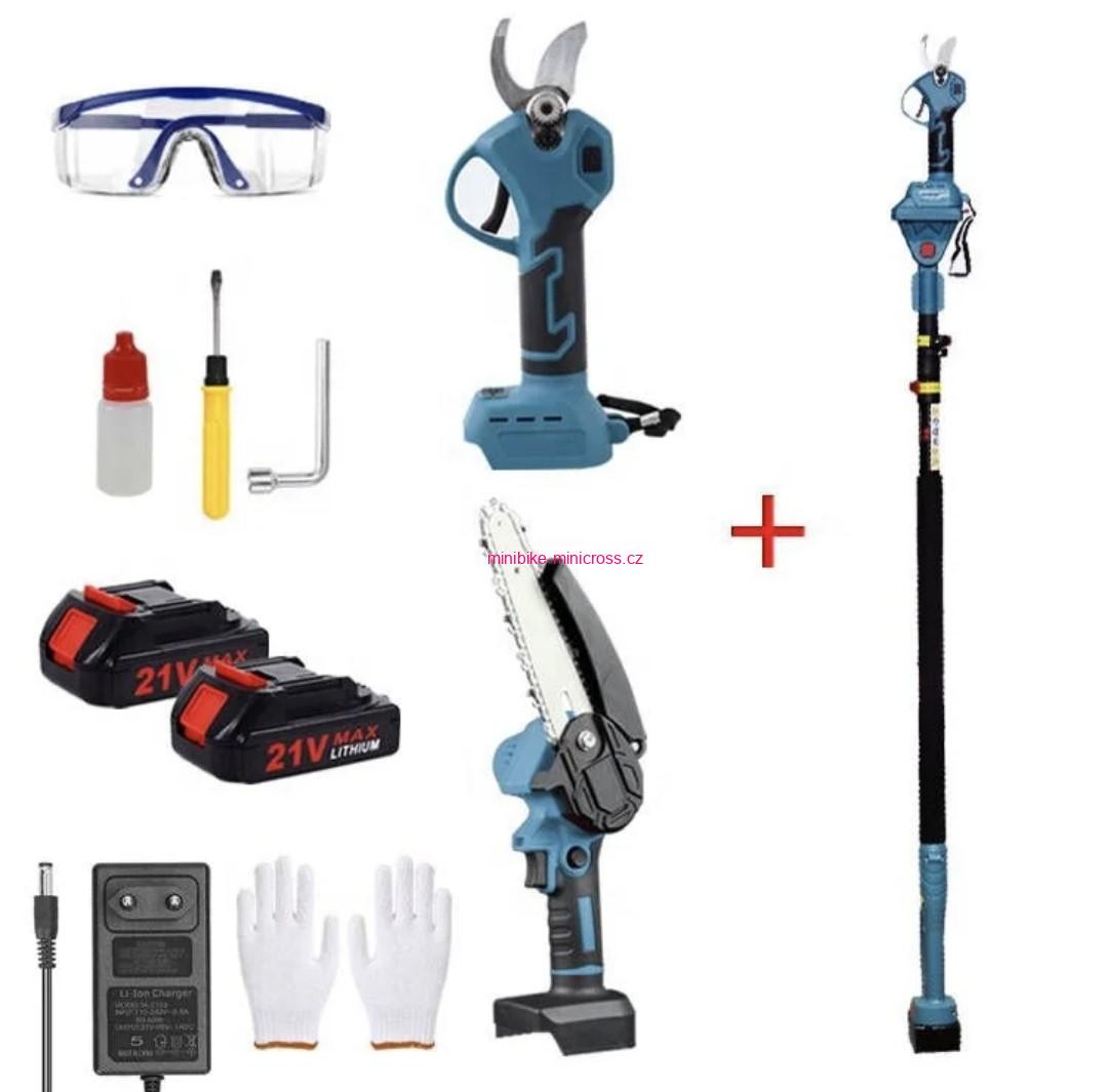 Teleskopické zahradní AKU nůžky a pila 21V
